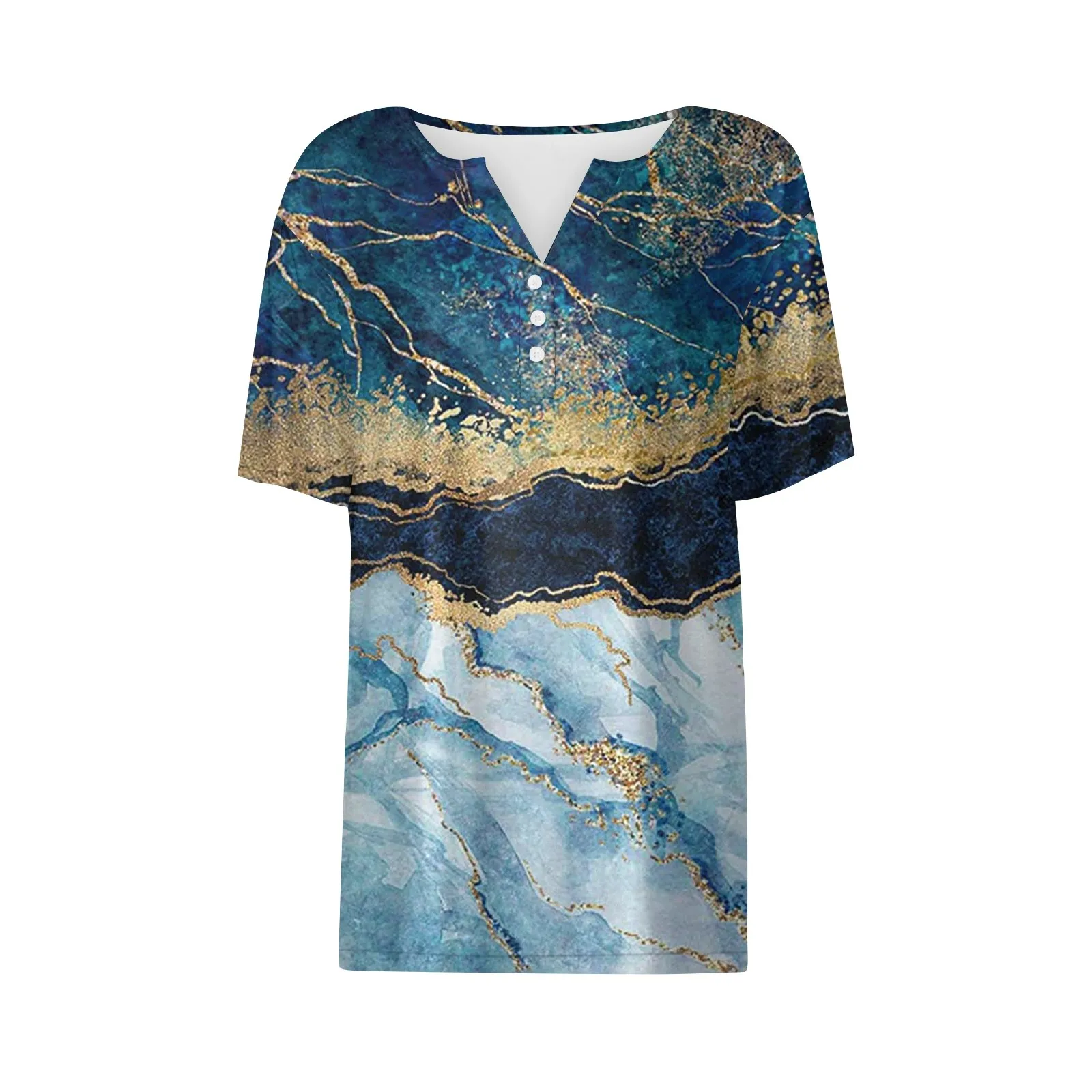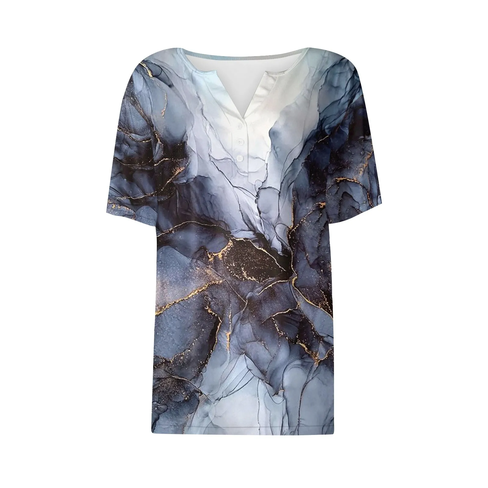 Women's T Shirt Tee Print Button Short Sleeve Daily Weekend Fashion Basic V- Neck Regular Top