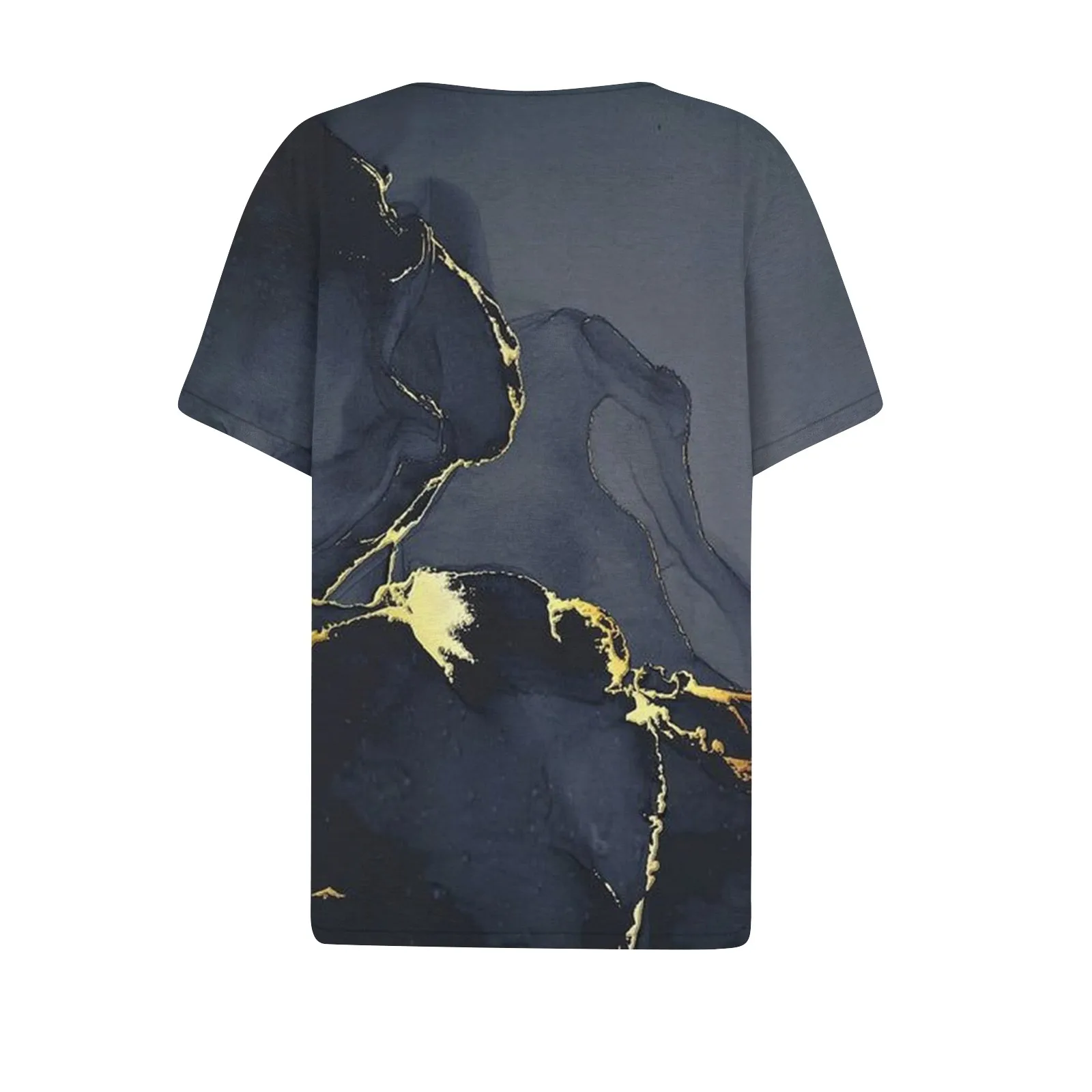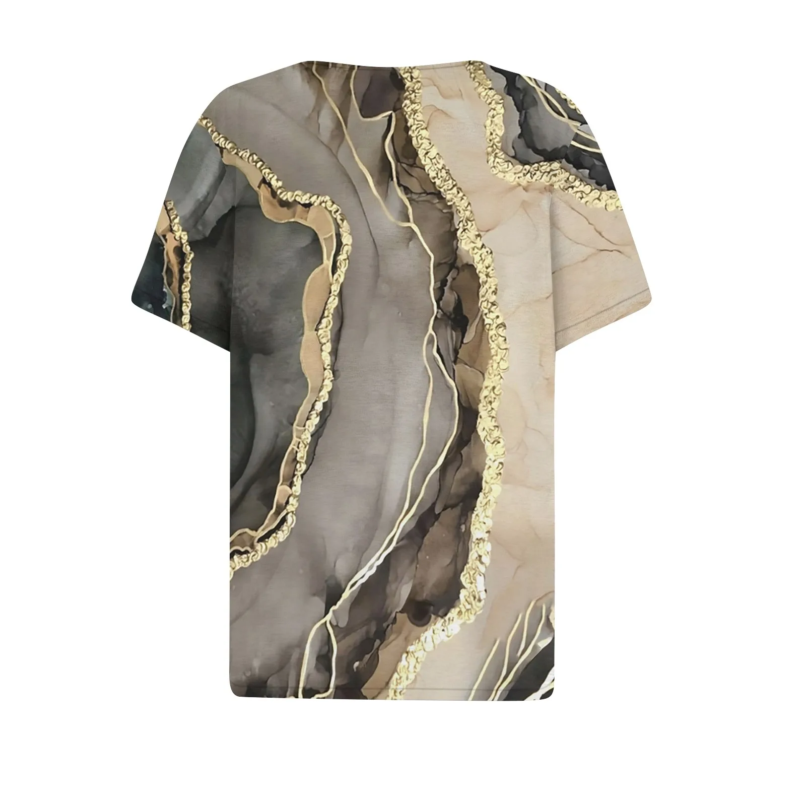 Summer Women T-Shirts 3D Fashion Print Gradient Harajuku T Shirt Oversized Tees for Ladies Clothing New Short Sleeve V-Neck Tops
