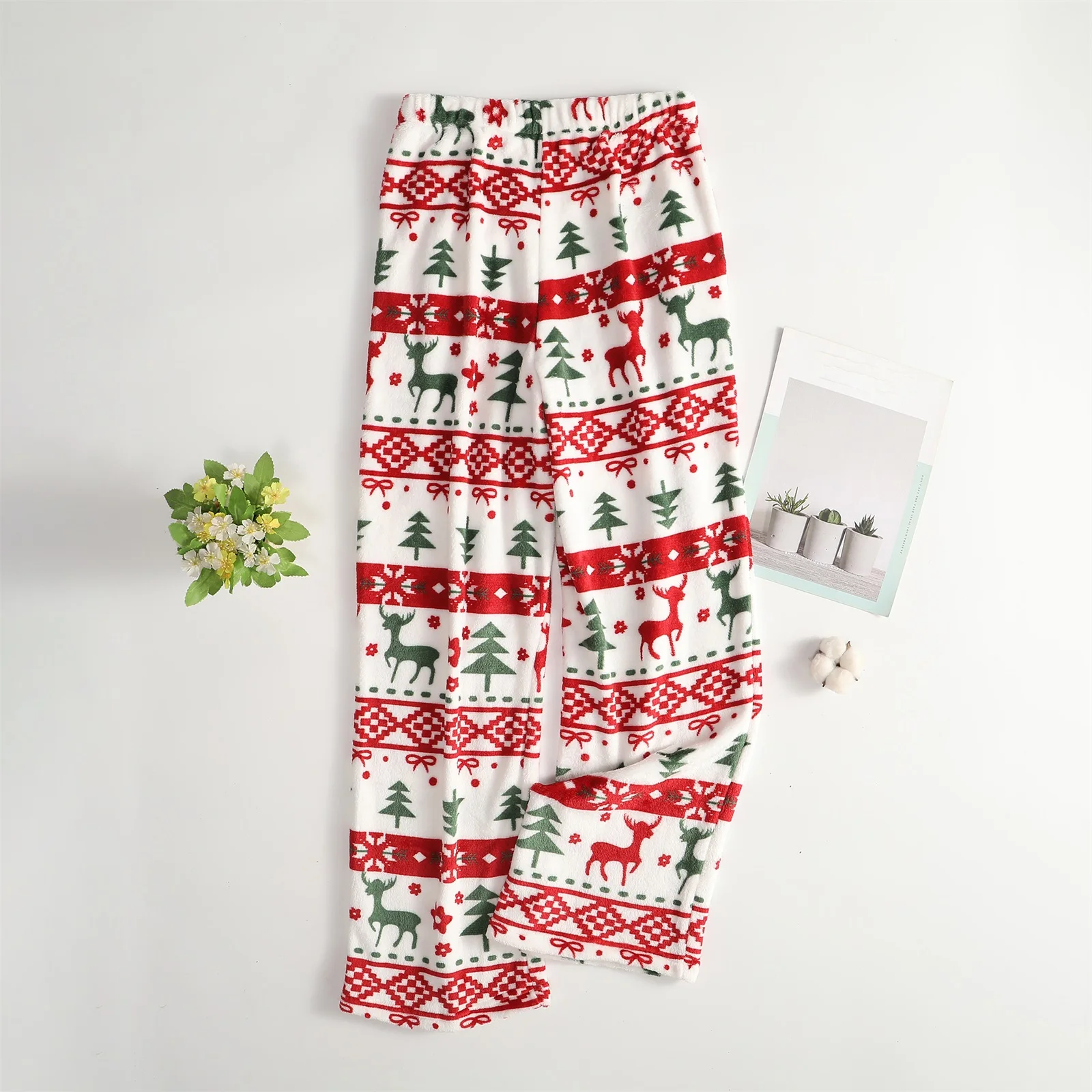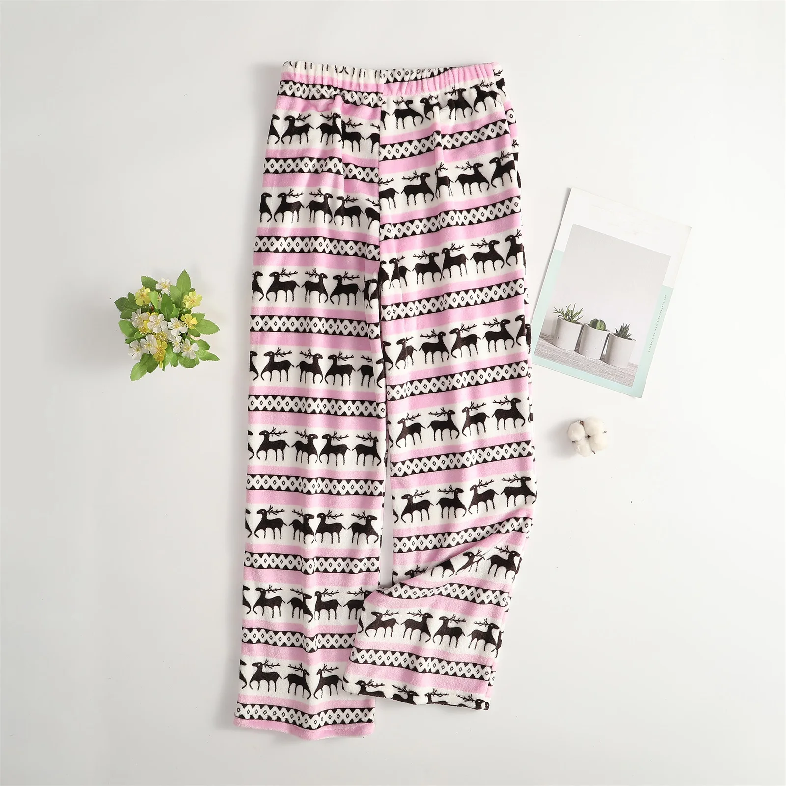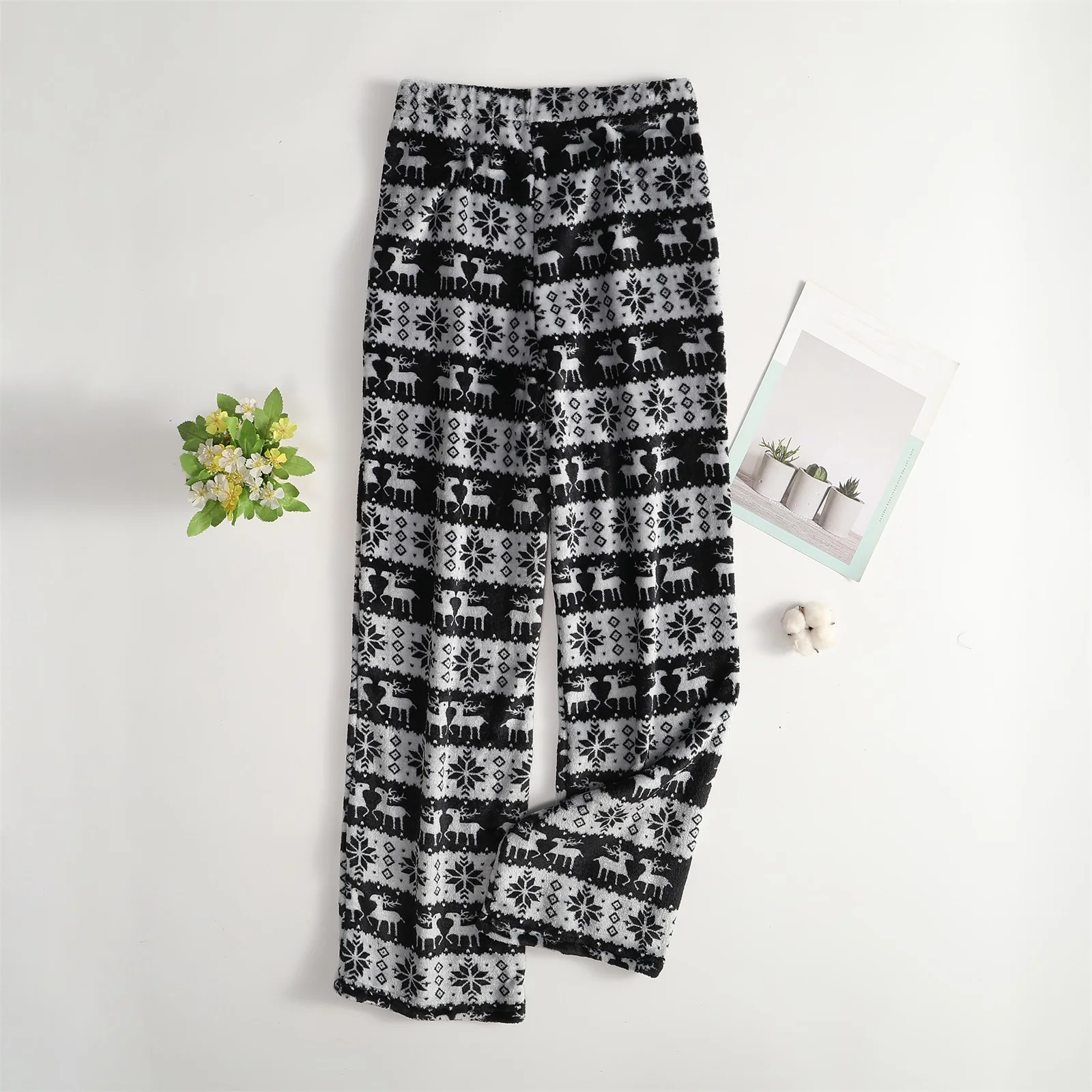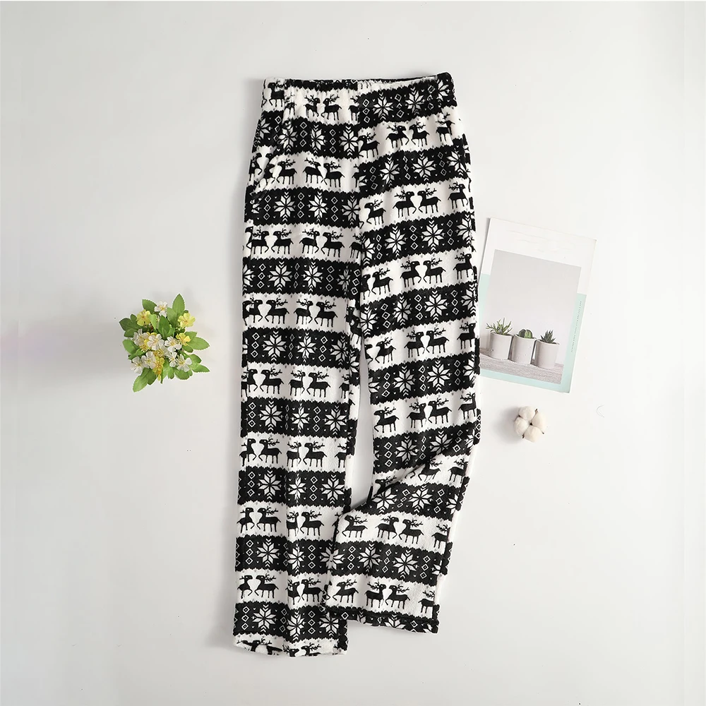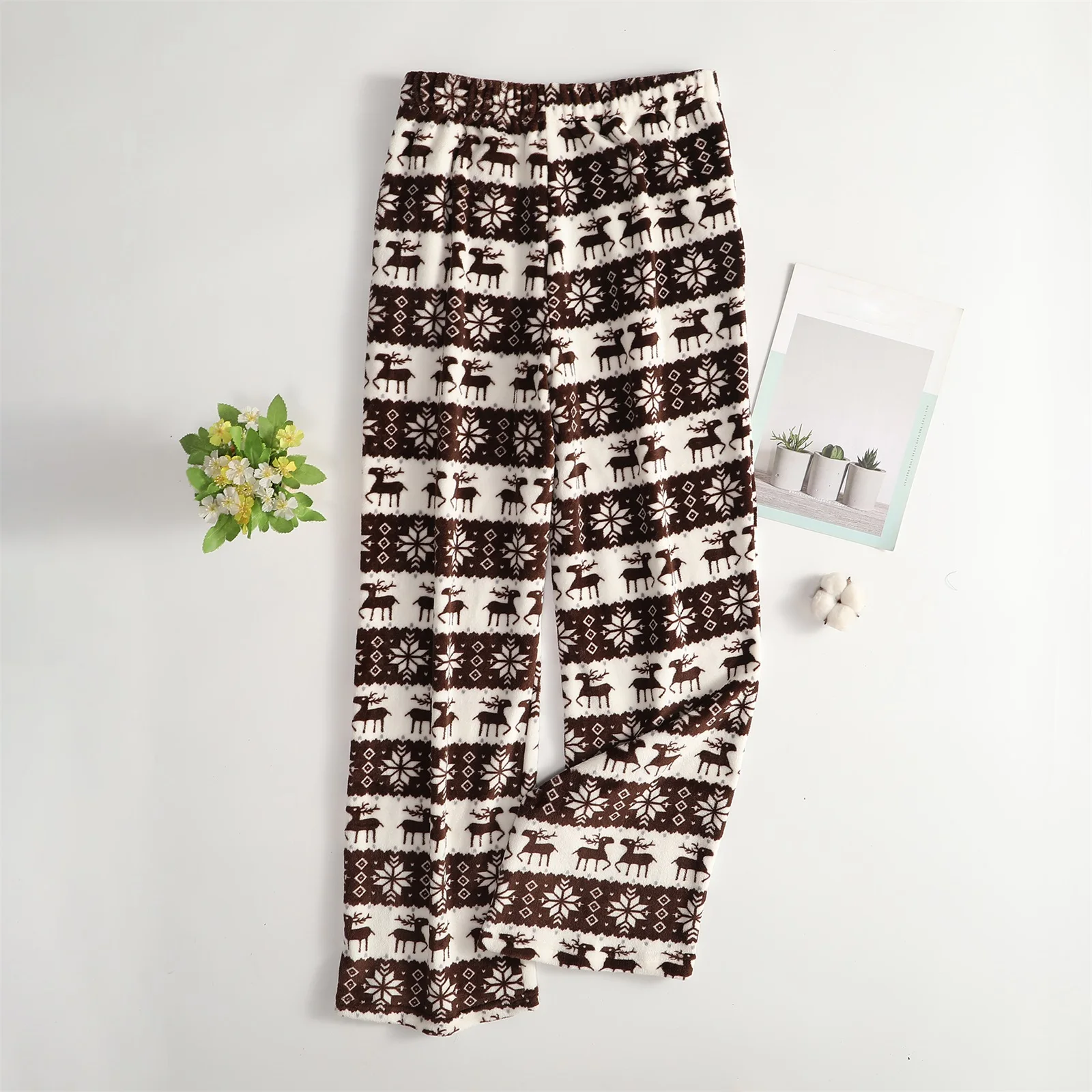 Women Christmas Printed Pajama Pants Winter Warm Soft Plush Sleep Pants Comfy Elastic Waist Home Clothes Bottoms with 2 Pockets