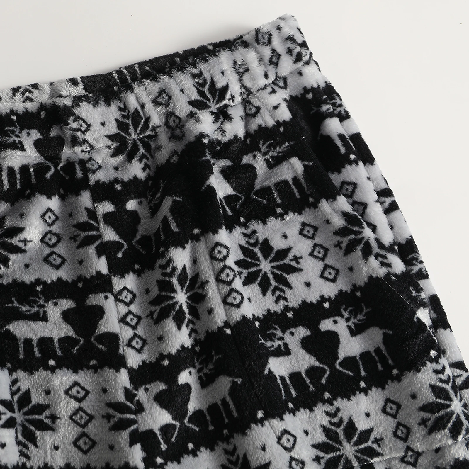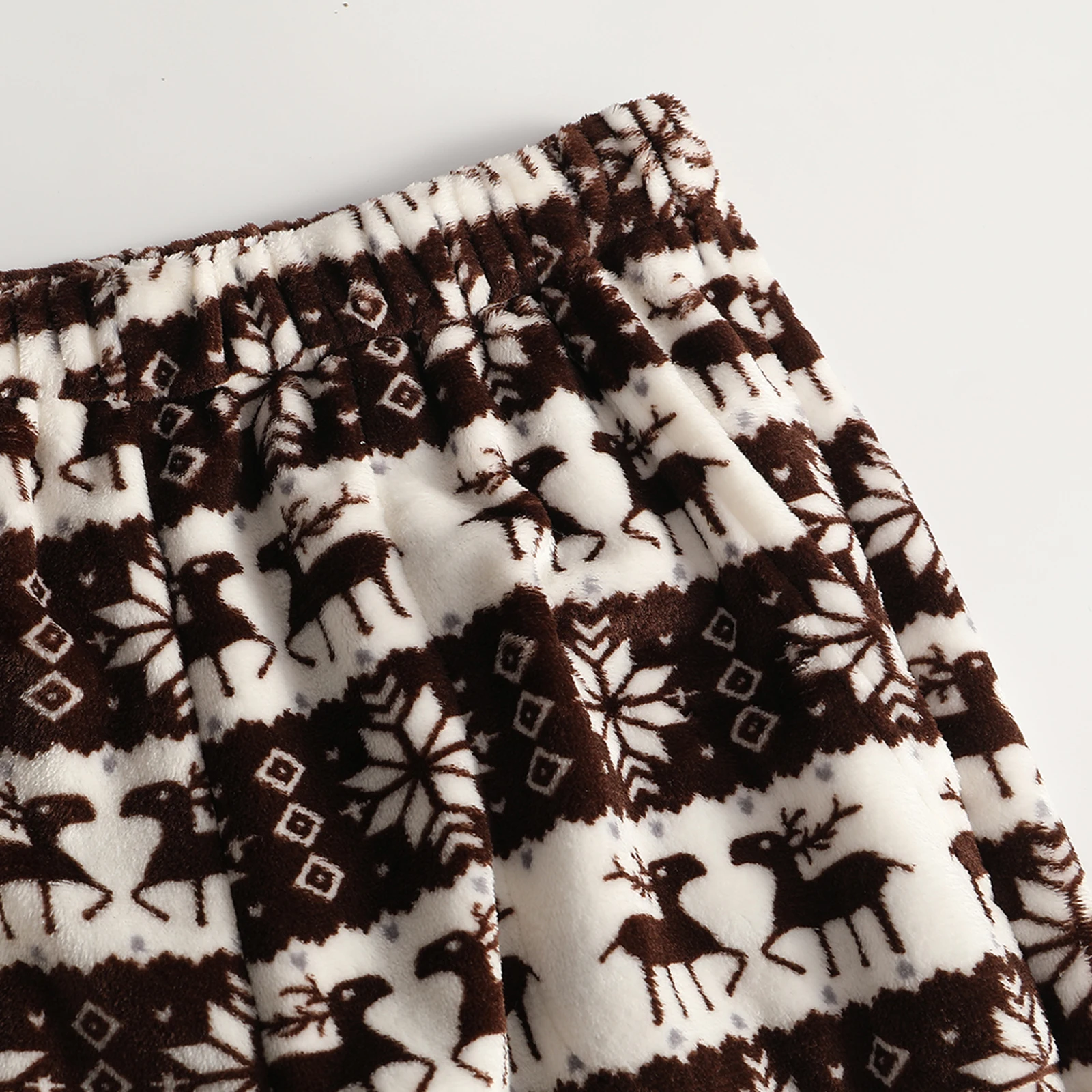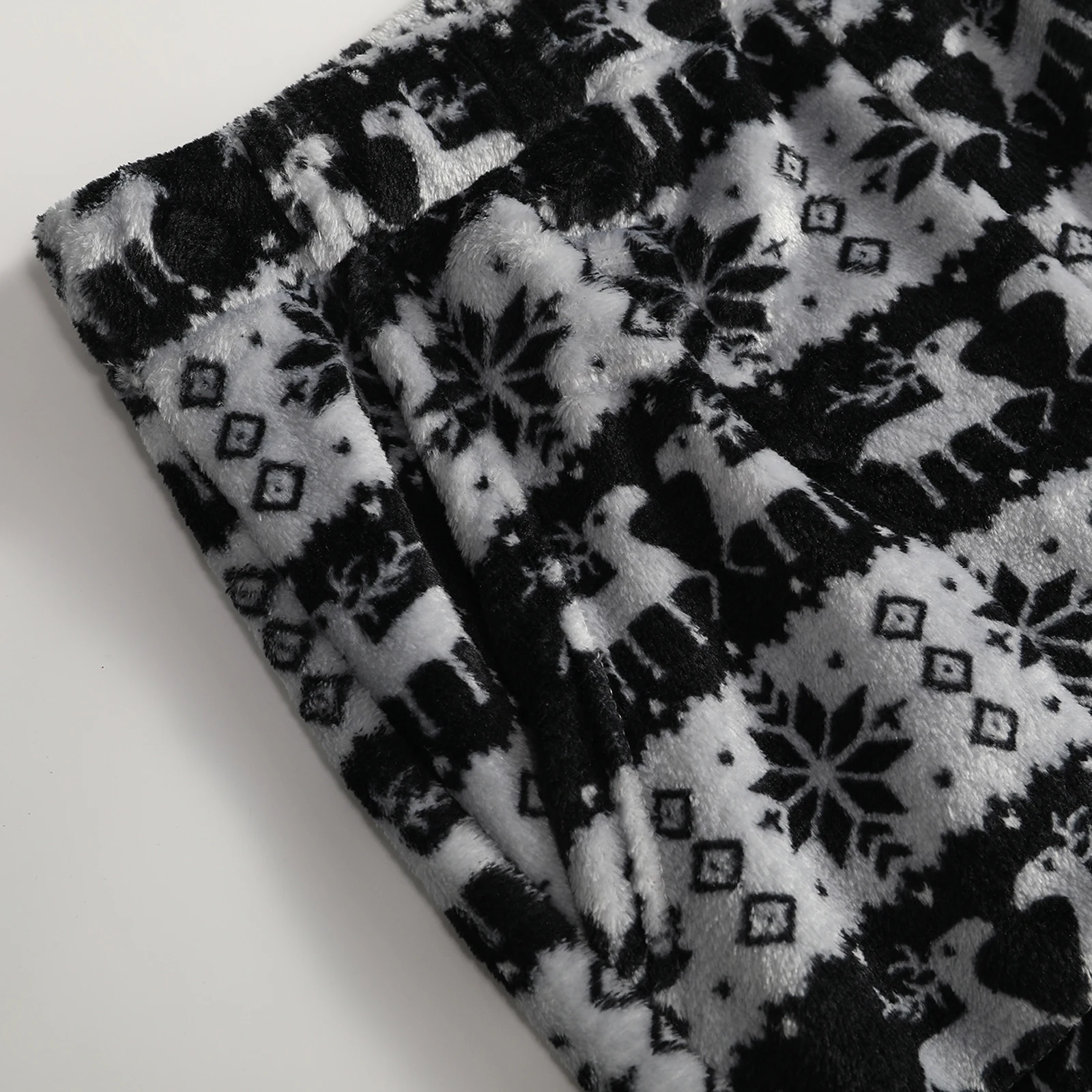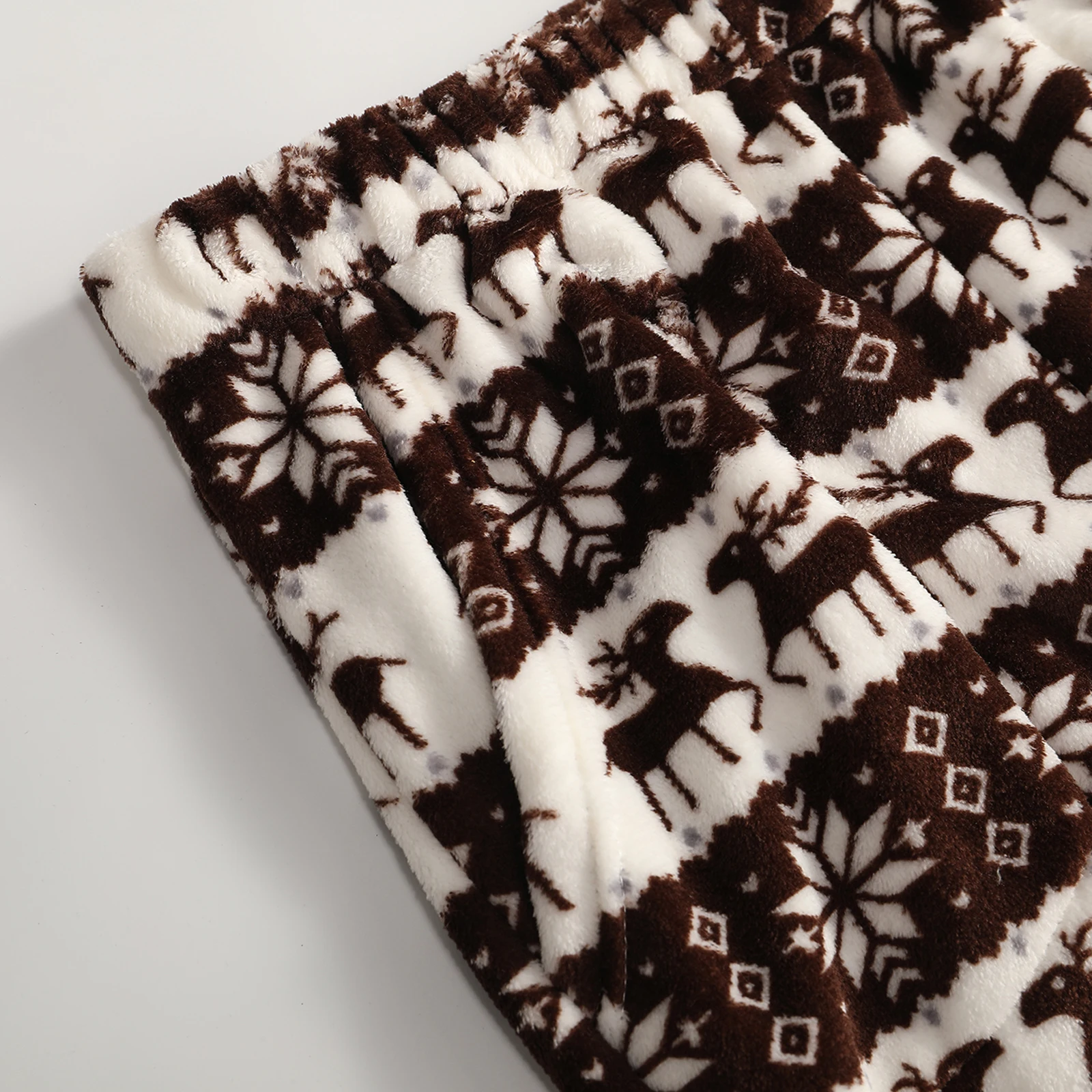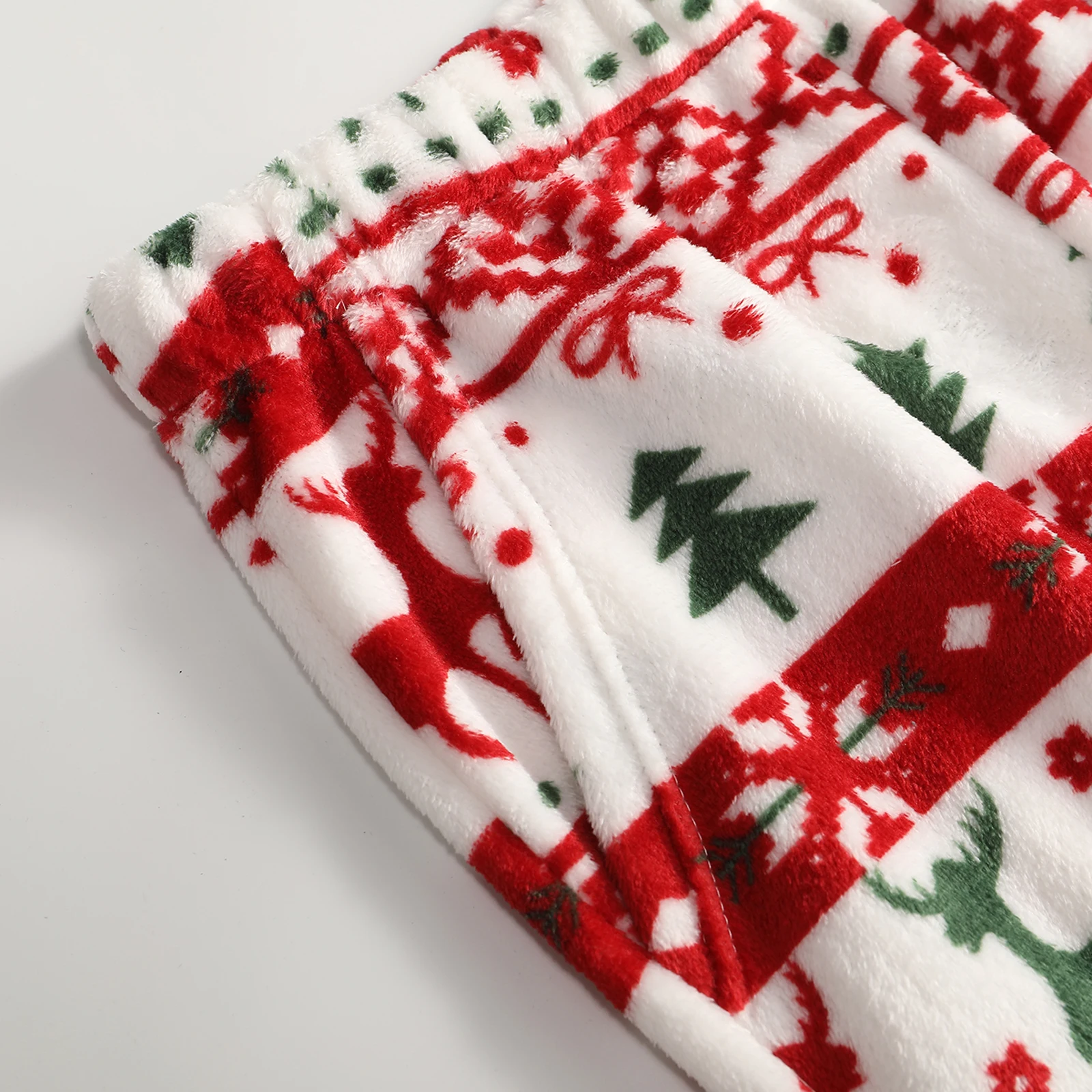 Women Christmas Printed Pajama Pants Winter Warm Soft Plush Sleep Pants Comfy Elastic Waist Home Clothes Bottoms with 2 Pockets