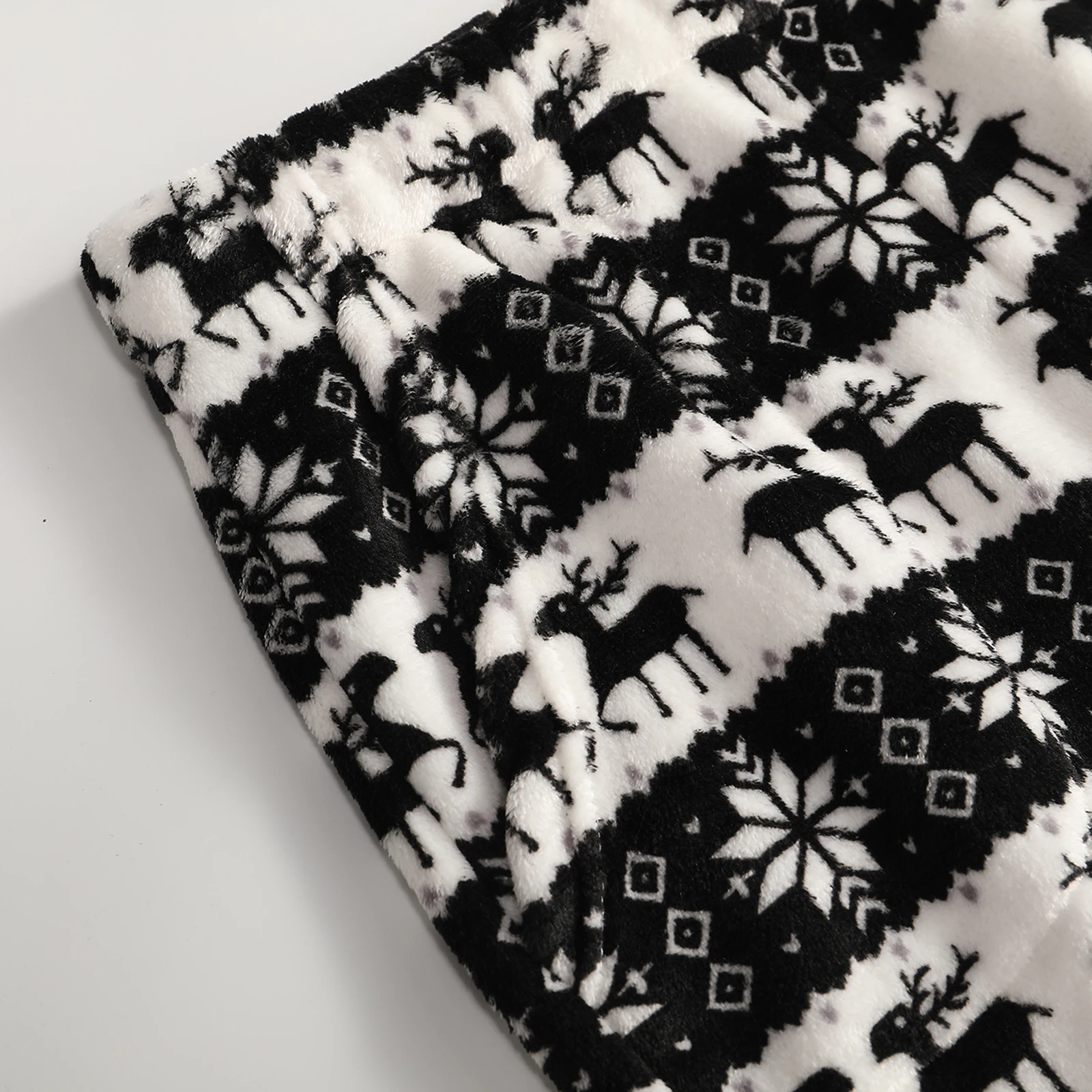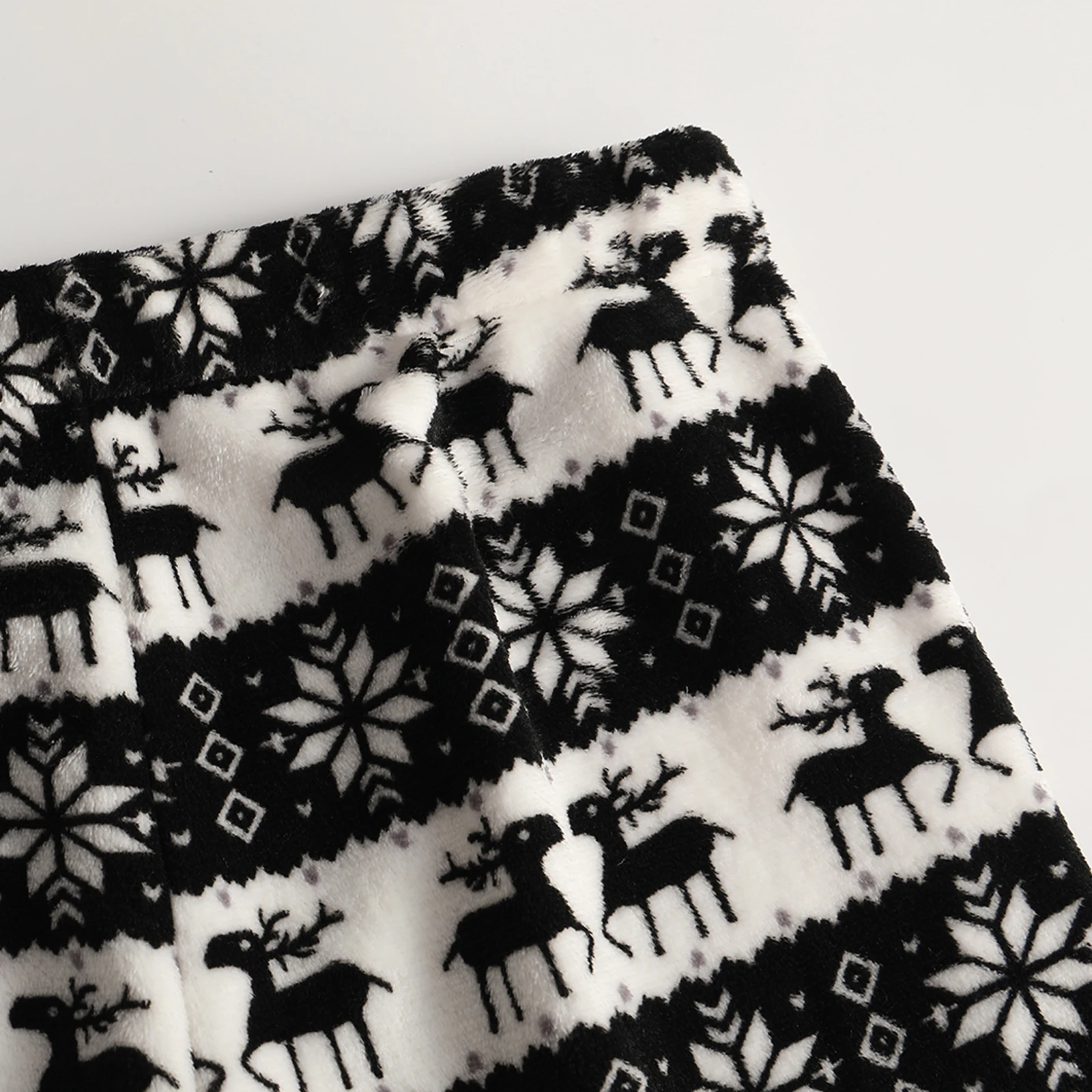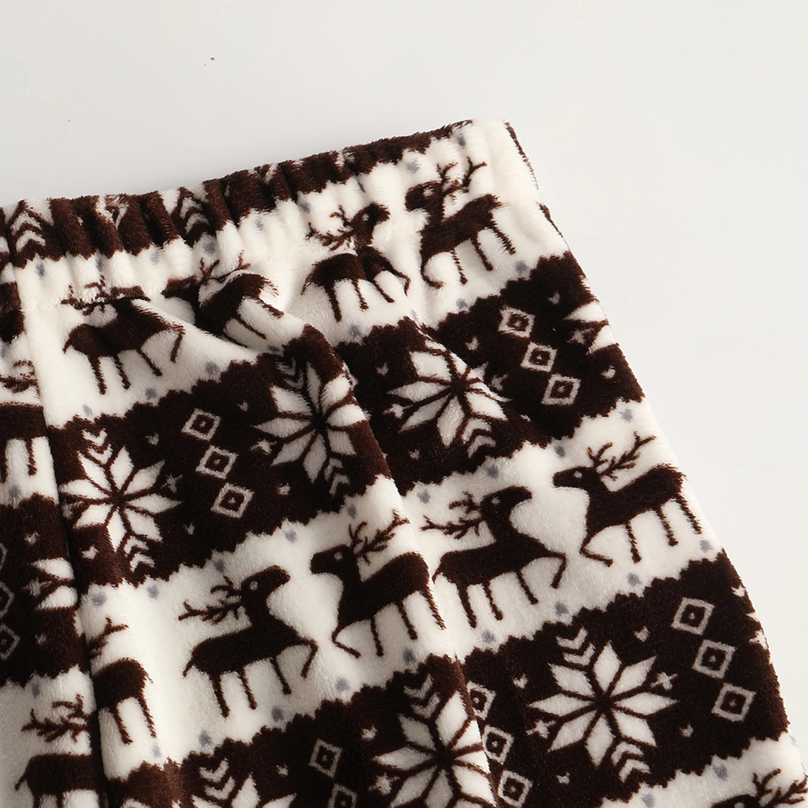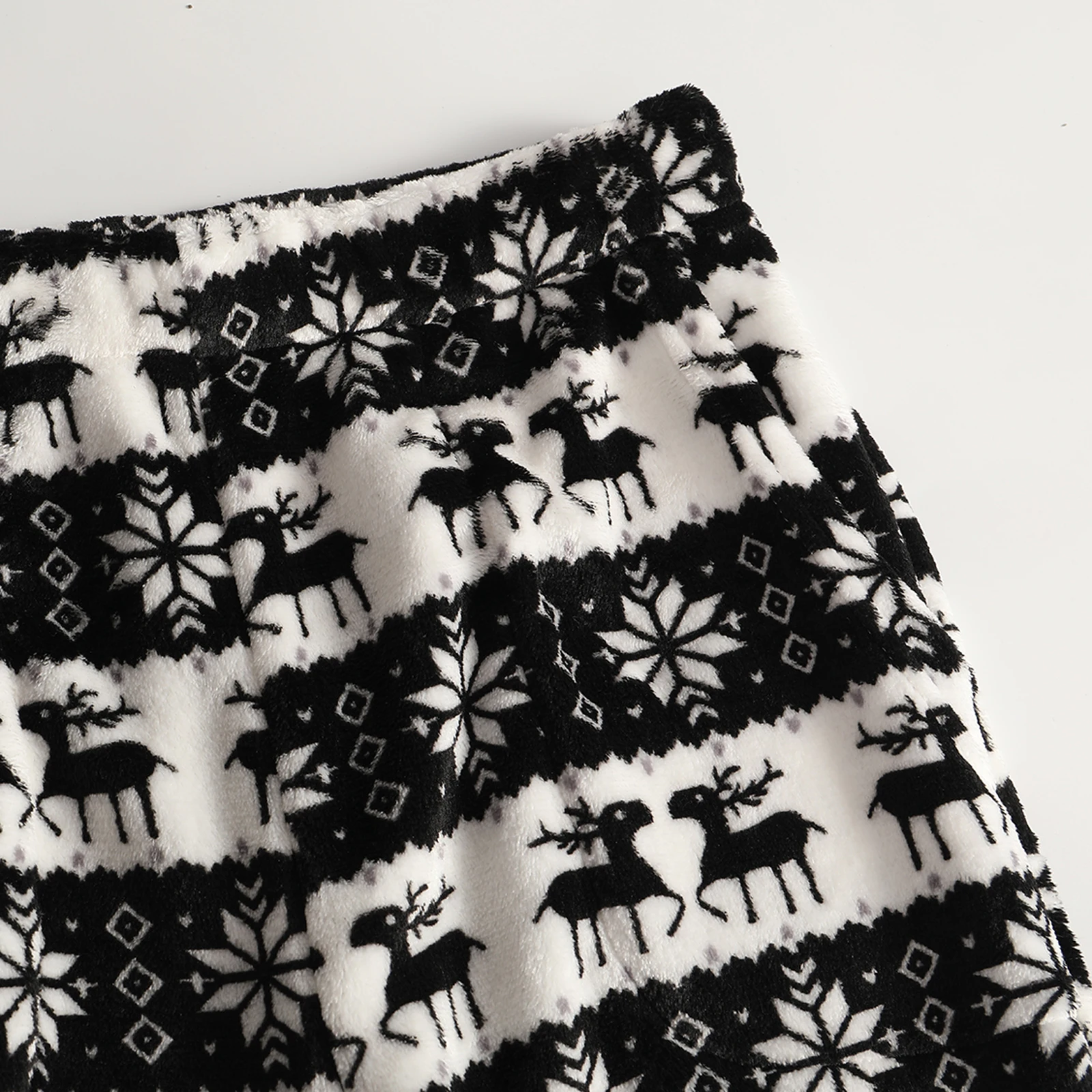 Women Christmas Printed Pajama Pants Winter Warm Soft Plush Sleep Pants Comfy Elastic Waist Home Clothes Bottoms with 2 Pockets