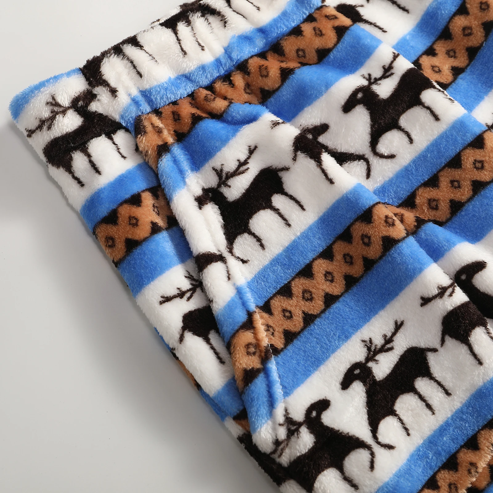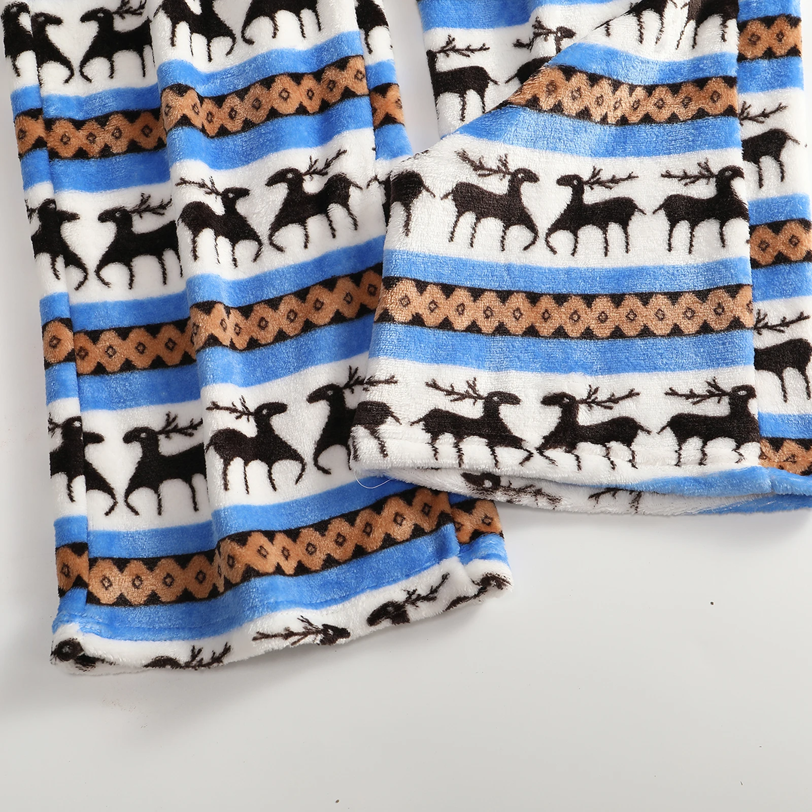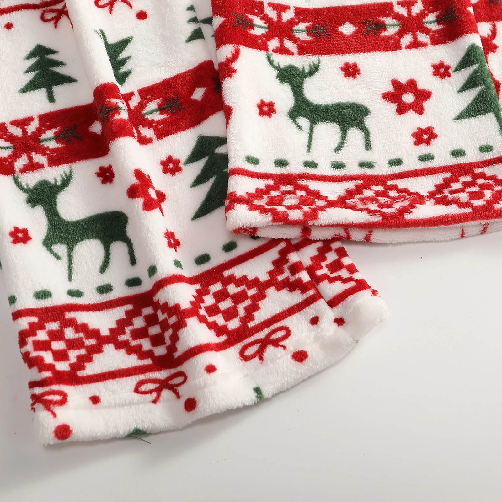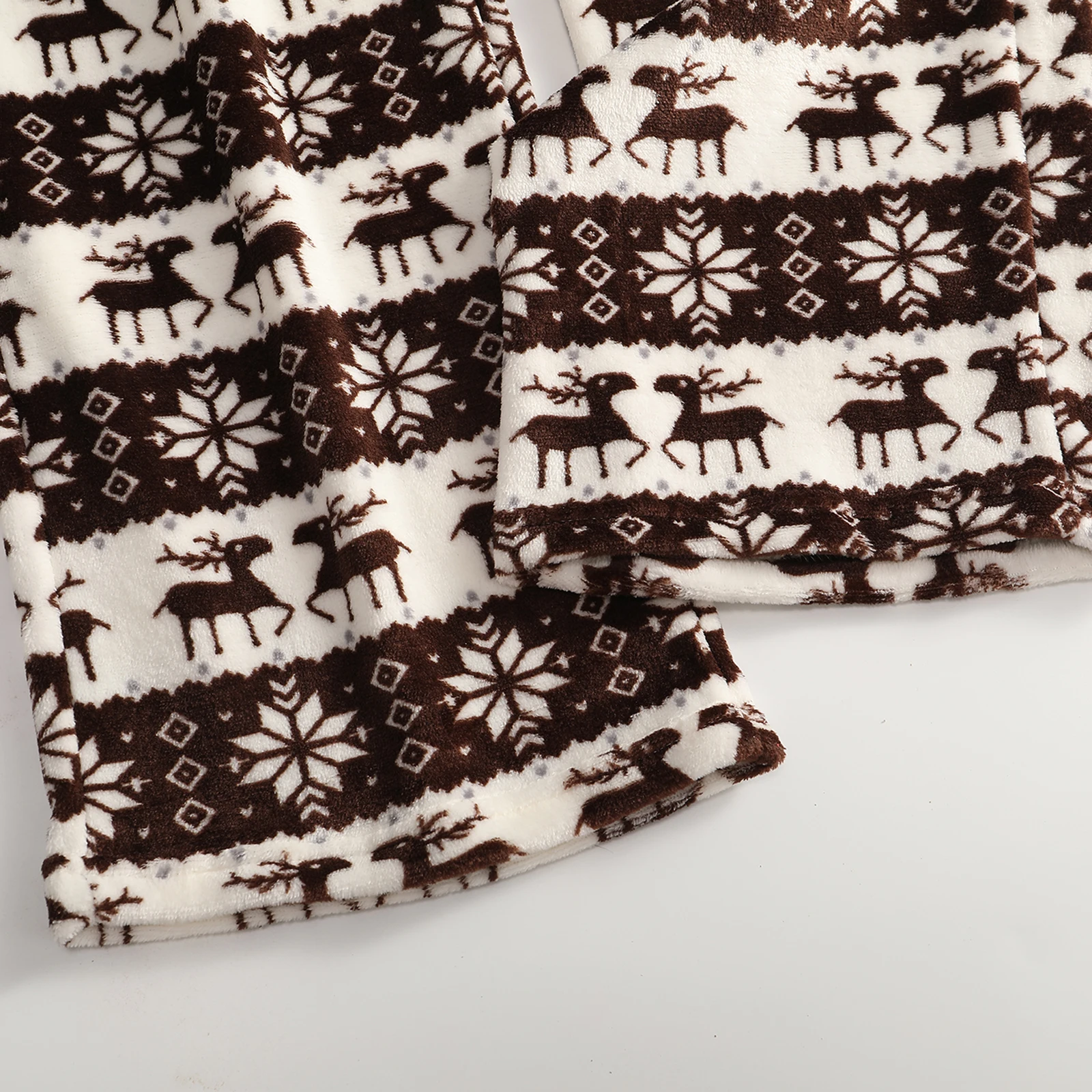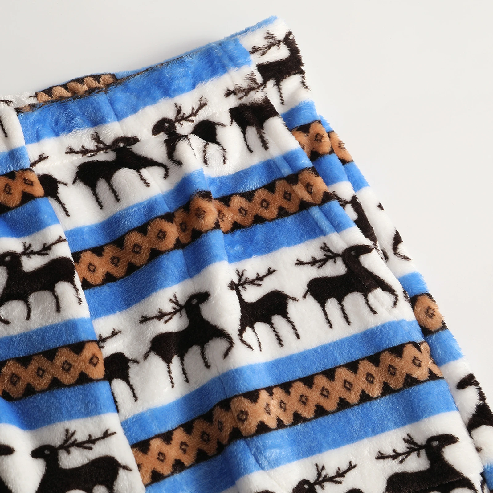 Women Christmas Printed Pajama Pants Winter Warm Soft Plush Sleep Pants Comfy Elastic Waist Home Clothes Bottoms with 2 Pockets
