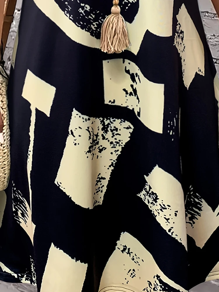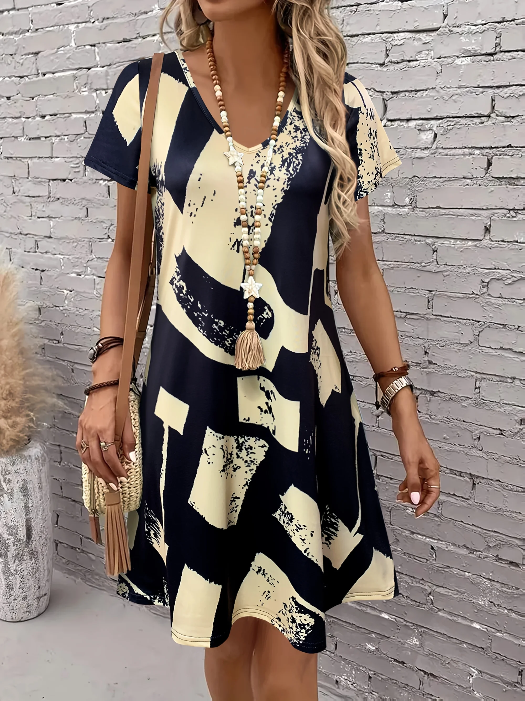 Featuring an abstract print pattern, this dress stands out with its unique and stylish design.